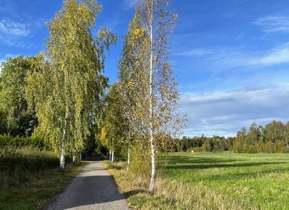 Dubbelsidig allé av vårtbjörk utmed Gersnäs allé, sett från söder. Foto Naturcentrum AB.