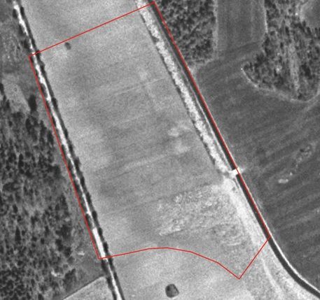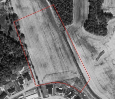 Ortofoto från 1960 visar planområdet markerat i rött, med Lasstorpsdiket beläget intill den östra plangränsen.