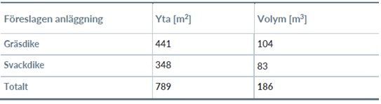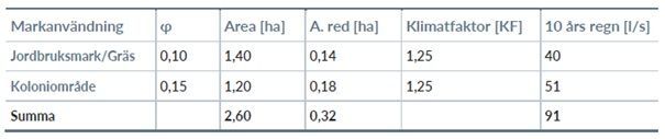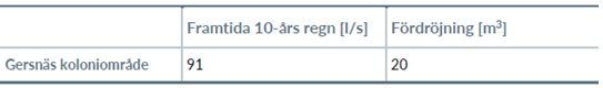 Tabellen ovan redovisar beräknad fördröjningsvolym. Bild Systra AB.