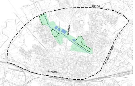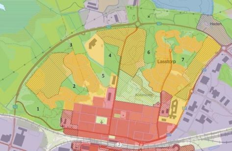 "En ny vattenpark och rekreationsområde planeras längs med Lasstorpsdiket där dagvattnet kan utnyttjas som rekreation till parken. Parken ska kopplas ihop med natur/friluftsområdet nordväst om riksvägen. Grönområden och skogar som inte markerats på kartan ska bevaras."
